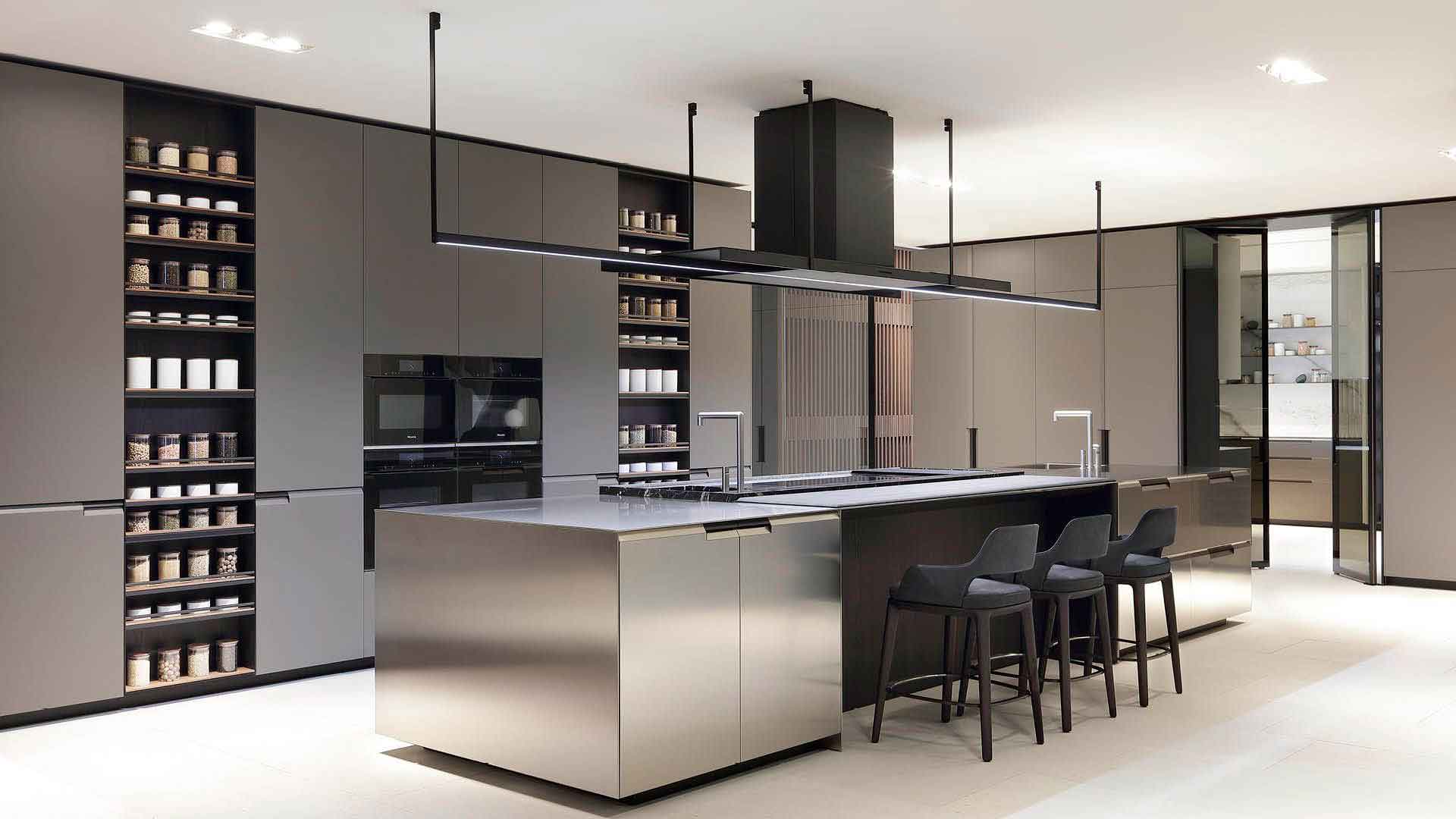 Столешницы из нержавеющей стали очень популярны в урбанистических интерьерах. Сталь прочна, долговечна, не боится нагревания, выглядит очень стильно. За глянцевой стальной поверхностью легко ухаживать, но на ней остаются пятна и следы даже от пальцев. Эту проблему решают матовые поверхности: они не так эффектно выглядят, как глянцевые, зато практичны. Серьезных механических воздействий сталь не выдержит — на ней останутся царапины.